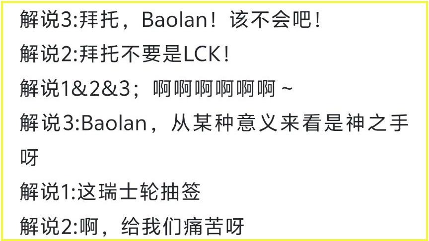 同样破防的,还有LCK观众,他们在论坛里,将宝蓝视作LPL的救赎者,部分极端玩家,甚至怒斥宝蓝是历史最差辅助,看得出来,宝蓝这一手内战,确实把LCK整难受了,不过怎么说也是自己不争气,T1打CFO没赢,GEN也输给AL,但凡两队有一队赢了,第三轮内战概率也没那么高。