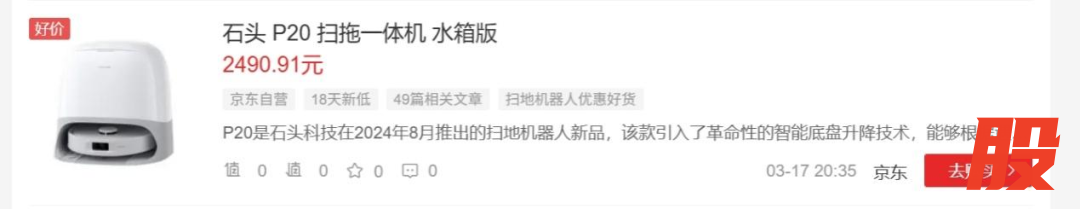 小李刚工作不久,租房独居,预算不算宽裕,却对生活品质有着近乎“较真”的追求。他盯上了石头科技P20扫地机器人,原价3499元,叠加各项补贴后,到手不到2500块。