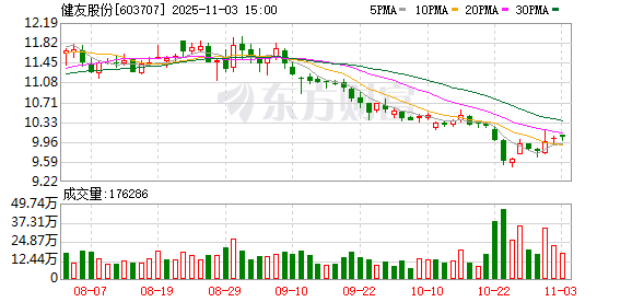 11月3日,健友股份(603707)发布公告,截至2025年10月31日,公司已回购138万股,占总股本的0.09%,回购金额为1501万元,回购价格区间在9.56元/股至11.66元/股。